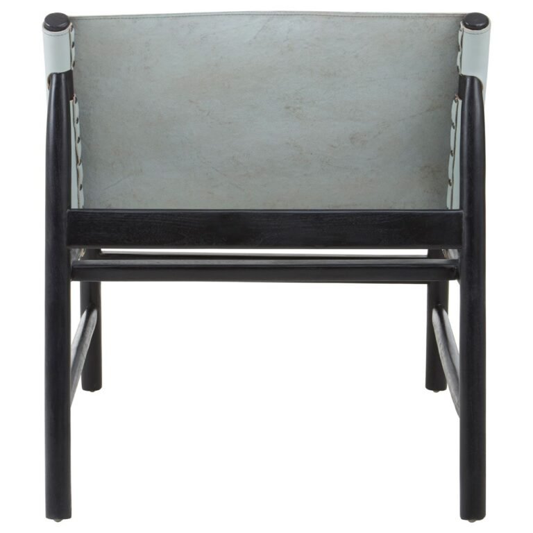 This Stirling Grey Chair has a frame crafted from solid teak wood and has a sleek black finish. Its relatively large footprint allows the backrest to be positioned at an angle, ensuring a relaxed sitting experience. Soft leather is stretched across the seat and backrest and is coloured grey to coordinate with the wood.