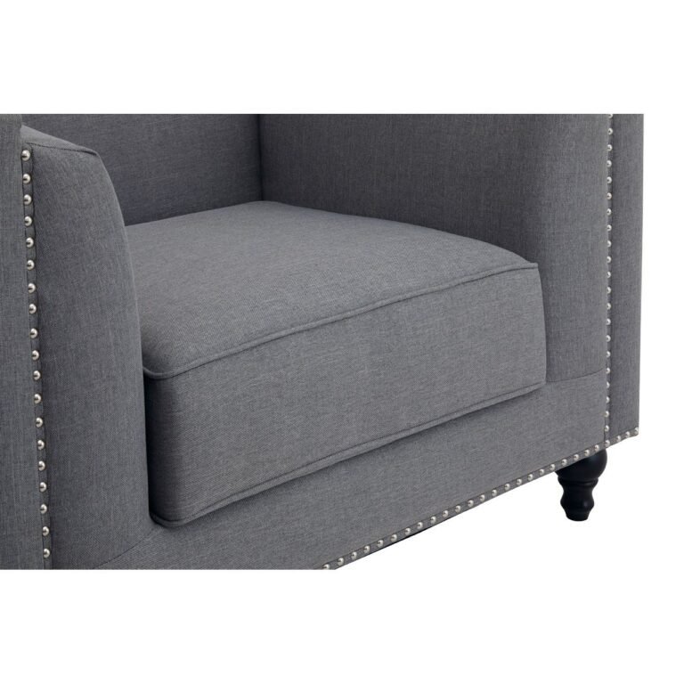 The Teya Grey Fabric chair’s boxy design features a thick cushioned seat for comfort and a low back, level with the armrests. Upholstered in tactile fabric, the chair’s soft grey colour contrasts with the glossy black finish of the feet. The carved rounded feet complement the subtle curve of the chair’s design.