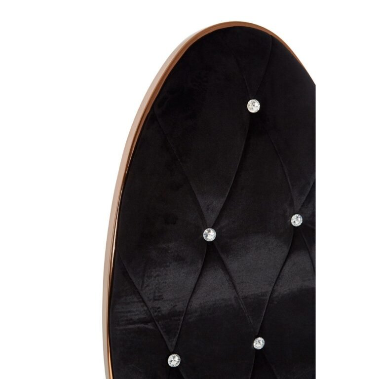Upholstered in plush black velvet, this Tival Black Velvet / Rose Gold Baroque Chair oval back is tufted with diamond pattern button detail. The curved armrest and cabriole legs at front in reflective warm metallic accent further its stylish, opulent aesthetic.