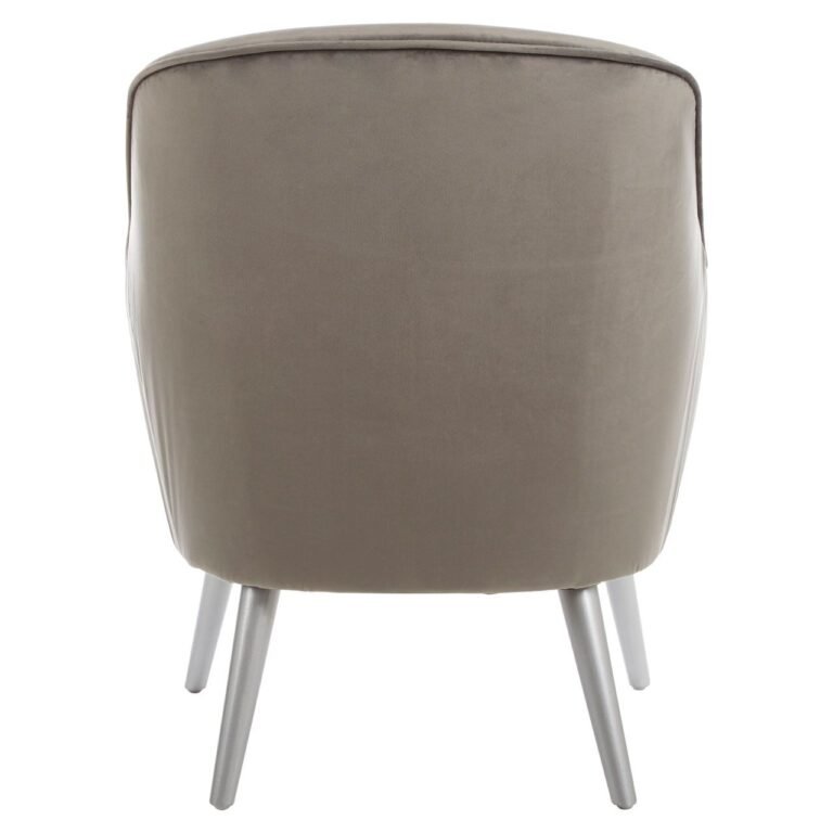 With silver coloured wooden legs, complemented by velvet fabric upholstery, the Uxor Grey Velvet Chair is suitable for a contemporary luxe design setting. A distinctive feature of this chair is the curved and pleated armrests which contrast with the smooth backrest. Its legs have a tapered design that follows the lines of the armrests.