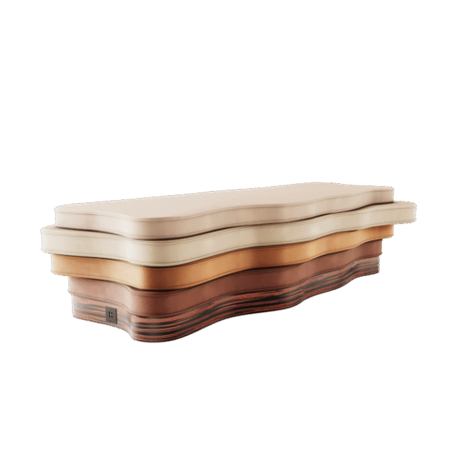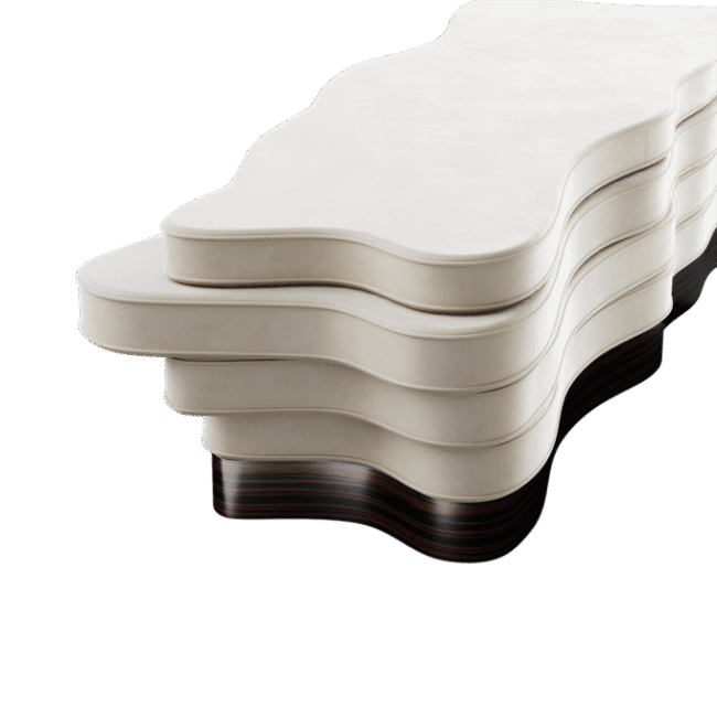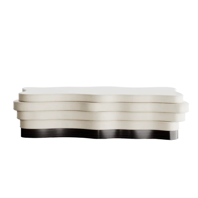 Cadiz Bench combines bold shapes with extreme attention to comfort. A modern bench with a Memphis-style inspiration is ideal for any contemporary seating area or a luxury entryway.