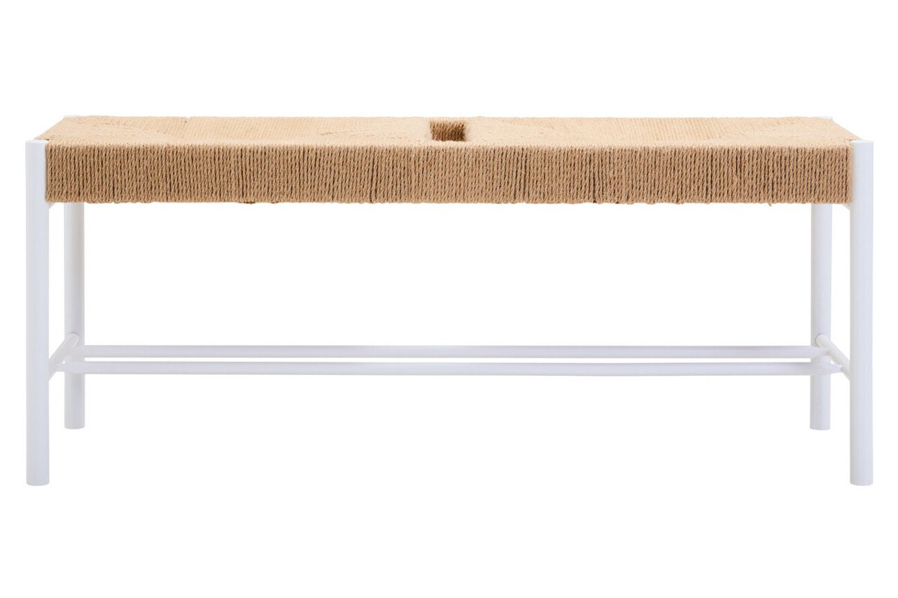Dran Natural Rope and White Wood Bench: Add organic charm to any living space with this contemporary bench. Crafted from natural rope and beechwood, this bench has a timeless style and includes horizontal bars for stability.