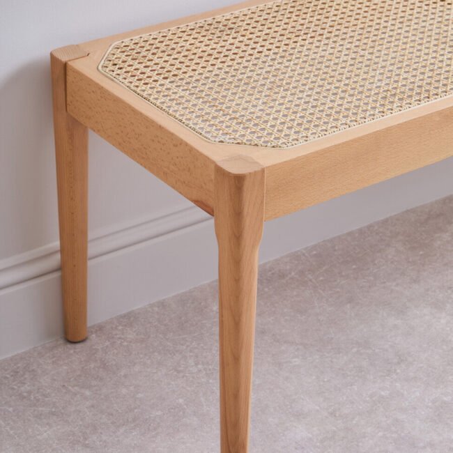 This modern style bench combines a beechwood frame with a natural cane seat, creating a refined yet textured look. Its slim legs and minimalist profile make it perfect for entryways, end-of-bed styling or communal seating around a dining table.