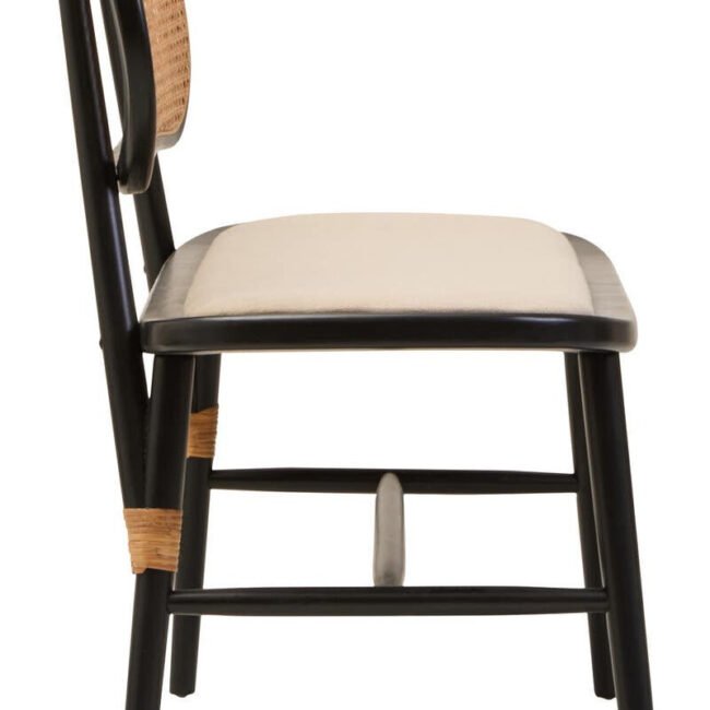 Blend natural sophistication with modern design in any space with the Ebu Natural Cane Bench with Black Elm Wood Frame. Its natural cane woven backrest aligns with the soft beige fabric seat, offering both comfort and visual texture. The black elm wood frame adds a striking contrast and ensures sturdy support, making it perfect for entryways or living areas with a refined and airy aesthetic.
