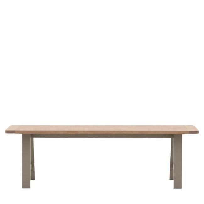 Traditionally inspired, this trestle bench has a contemporary edge. The grooved & planked oak seat and contrasting hand painted solid timber underframe with angled legs create an eye catching modern farmhouse look which sits perfectly in both rustic or modern homes. It is the ideal complement to the coordinating trestle table.
