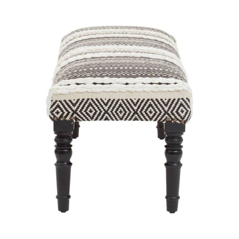 Fena Grey And White Bench: With its strong and sturdy wooden frame, this bench gives a boho touch to any space. The top of the bench is well cushioned, providing comfort, while the grey and white relaxed fabric provide style.