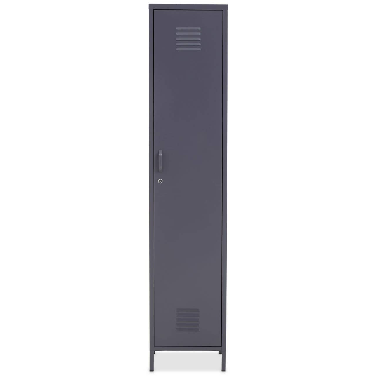 Acadia Grey Tall One Door Locker: This grey metal locker has a compact and lockable design, ideal to keep anything out of sight in the home or office.