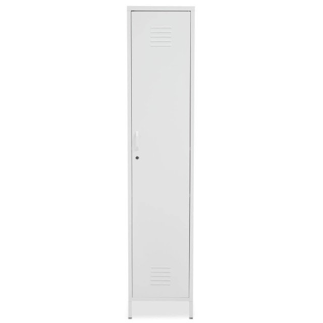 Acadia White Tall One Door Locker: This white metal locker has a compact and lockable design, ideal to keep anything out of sight in the home or office.