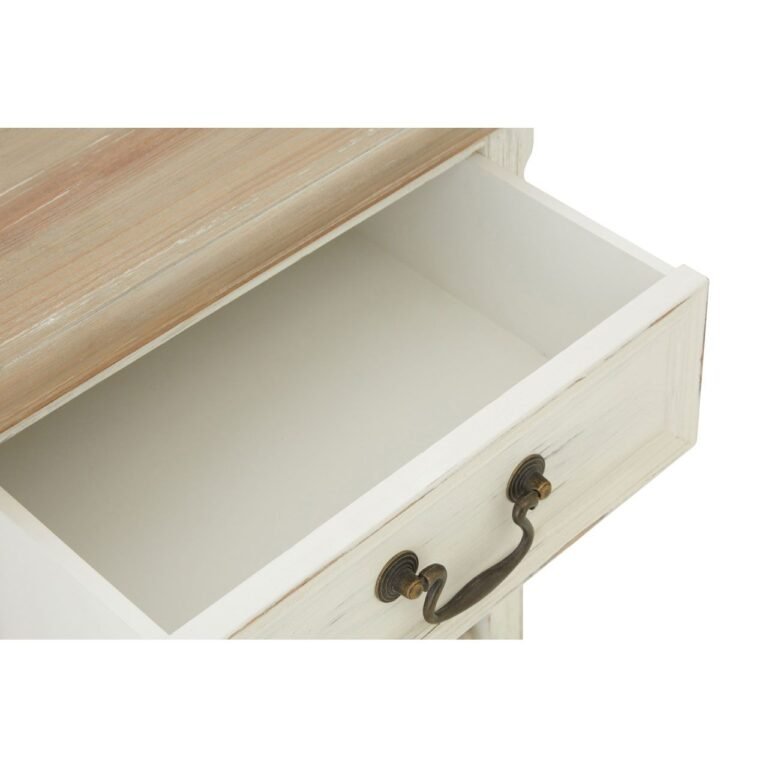 The Camden Cabinet With 6 Willow Baskets boasts carved detail which is accentuated by the weathered white finish, with small knop feet that enhance its traditional appeal. Six open compartments each feature a cotton-lined storage basket woven from eco-friendly willow, while its three drawers are decorated with antique style brass handles. The fir veneer top boasts bevelled edges, its golden colour complementing the white.