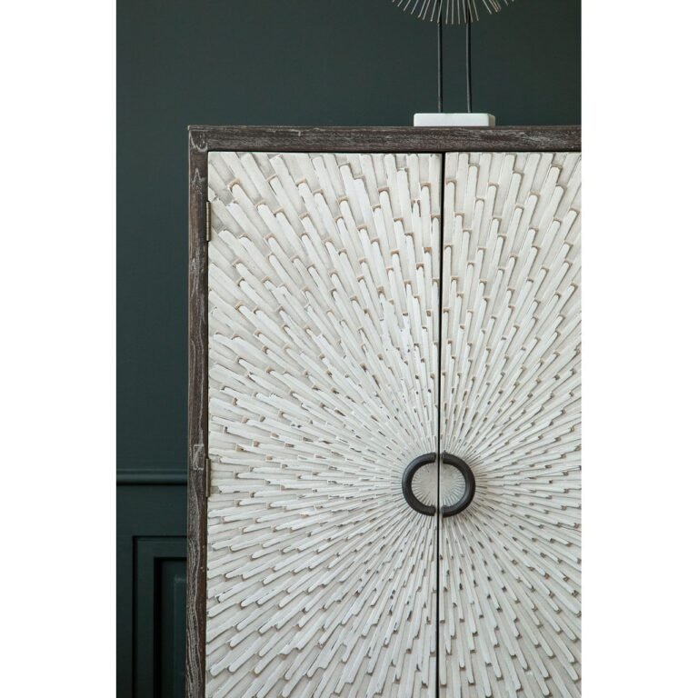 The Ermah White Wood Side Cabinet offers both sophistication and a rustic charm with its white wood and natural rattan build.