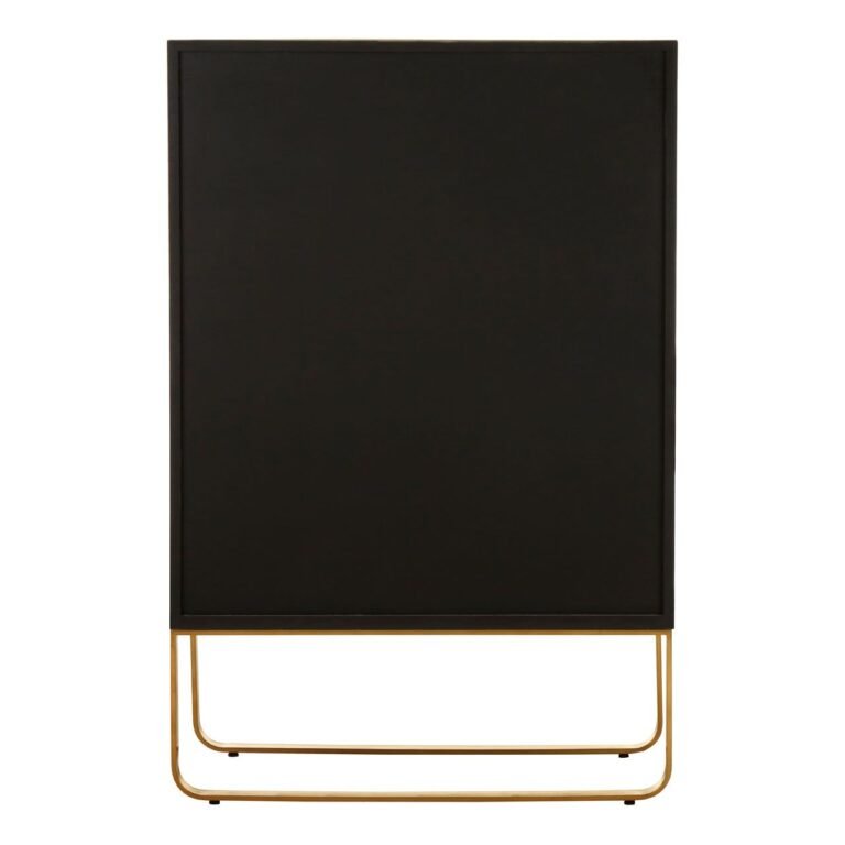 Odical Cabinet: Its frame is made from natural oak wood, the exquisite grain given room to breathe at each side. Both doors have a concrete facing which is coloured white. Brushed gold colour handles complement the linear pattern that breaks up the concrete. Curved stainless steel legs raise it, and three shelves provide ample storage.
