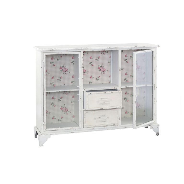 Olv York Loft 2 Door And 2 Drawer Cabinet: Making a bold statement in your living area, the Olv York Loft cabinet will help you keep an organised and tidy room. Featuring two glass doors, two drawers and an open shelf, the cabinet has plenty of space for storing and displaying your household items. Made using robust metal, the cabinet is given a white distressed finish for an industrial feel. Use the top of the cabinet to display your favourite ornaments, plants, lamps, photos and flowers giving your home a personal touch. Ideal for use in your living area, the two door and two drawer cabinet will make a striking feature, while helping you to keep an organised and tidy home.