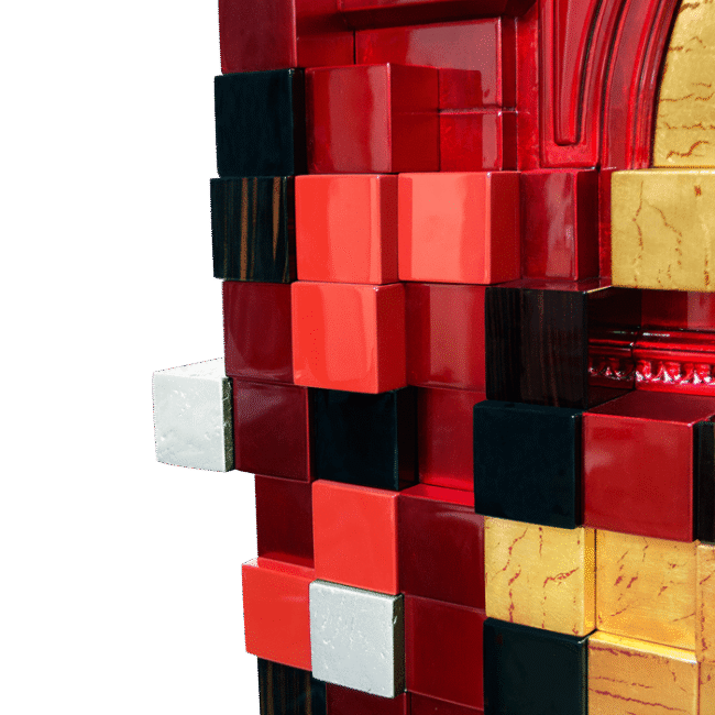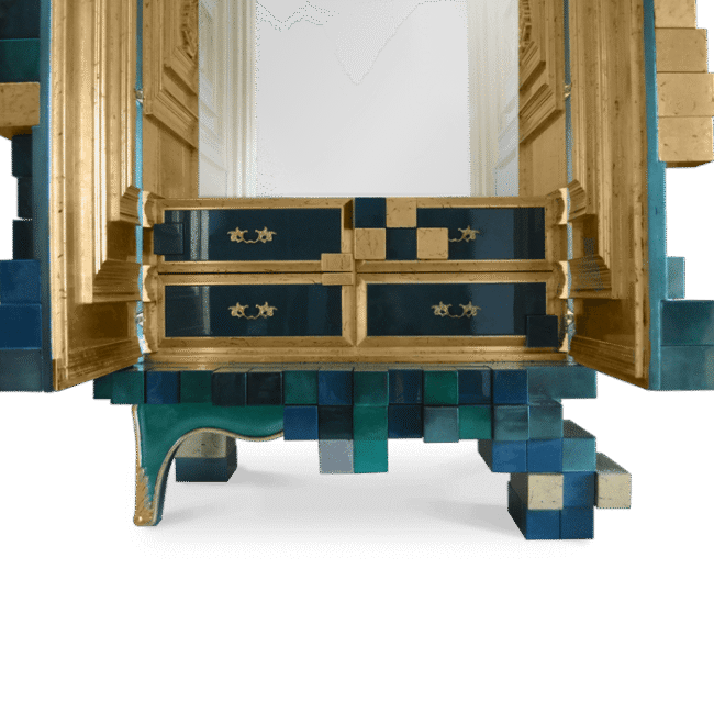 Remarkable and majestic, the Piccadilly cabinet sits comfortably in a league of its own. Taking contemporary furniture design to the very next level, the Piccadillys intricate hand carved details, impeccable gold leaf and wood veneer application and astounding form, make it one of Boca do Lobos most impressive pieces. Its interior features classic lines and elements, and is composed of two glass shelves and four drawers with traditional handles. The Piccadilly cabinet ultimately represents the passion felt by Boca do Lobos talented design team and craftsmen, embodying the brands unique philosophy and core values.