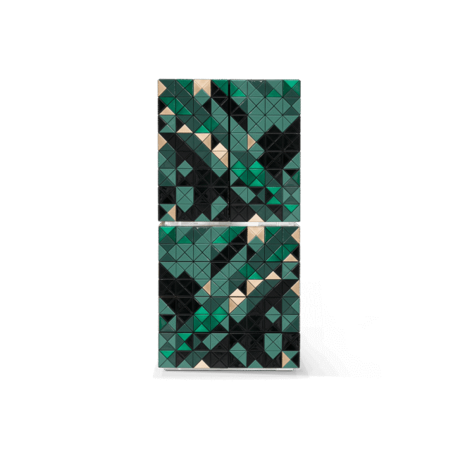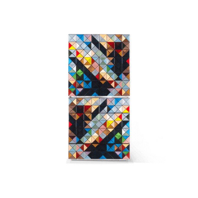 Wood, Mirror, Acrylic. Triangles: Lacquered Wood, Gold Leaf, Varied Choice Of Colours Lacquers.