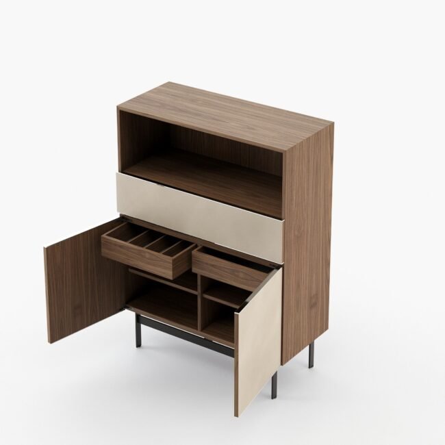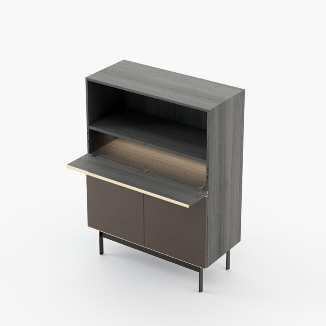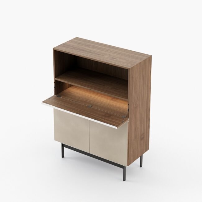 Elevate your home entertaining experience with the Ralph Bar Cabinet. This modern marvel boasts a stunning combination of materials for a truly unique and sophisticated look. The compact footprint (110cm high x 50cm deep) makes it ideal for apartments or smaller living spaces, while still offering ample storage and functionality. Behind its sleek facade lies a world of possibility, with hidden compartments and shelves perfect for glassware, spirits, and barware. Whether showcasing your collection or whipping up a masterpiece cocktail, the Ralph Bar Cabinet is a stylish and functional centerpiece for any modern home.