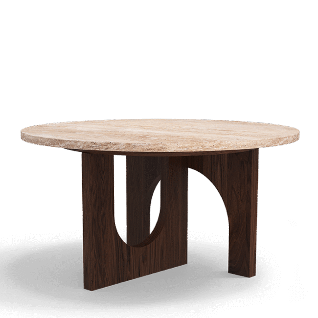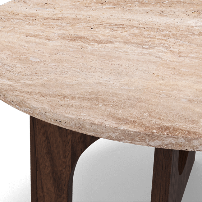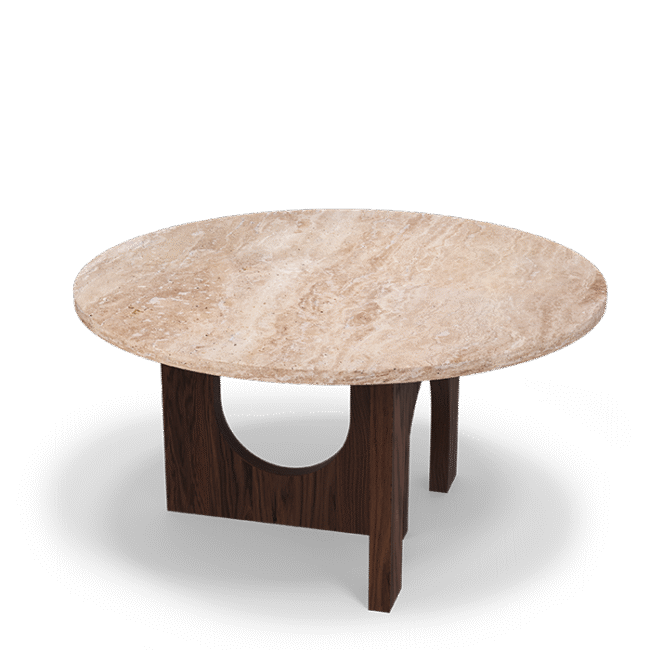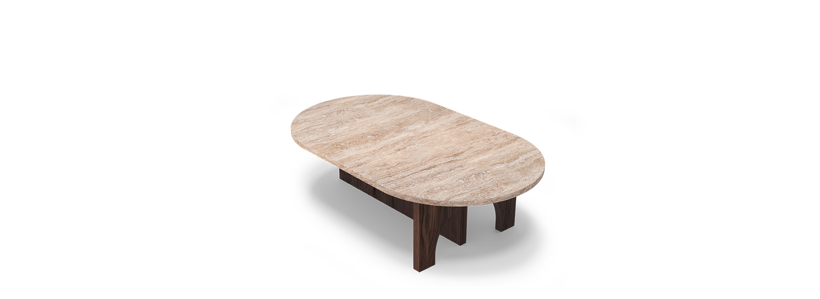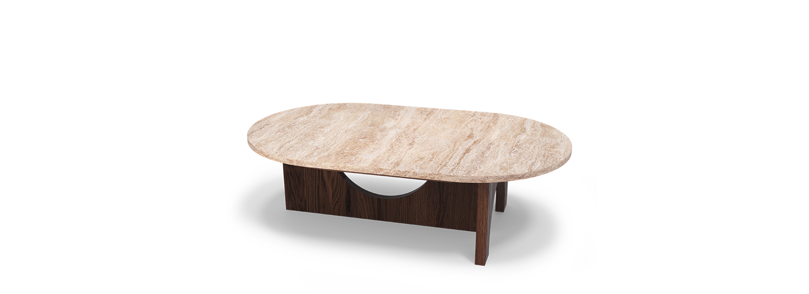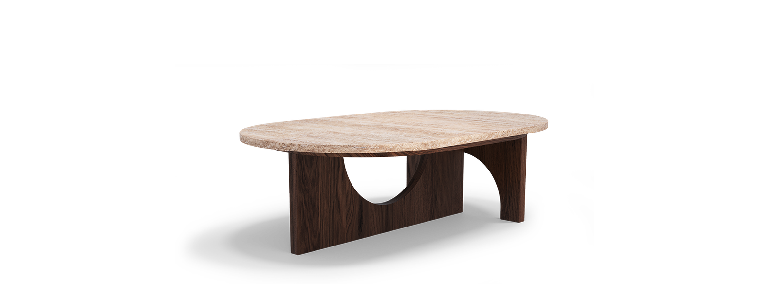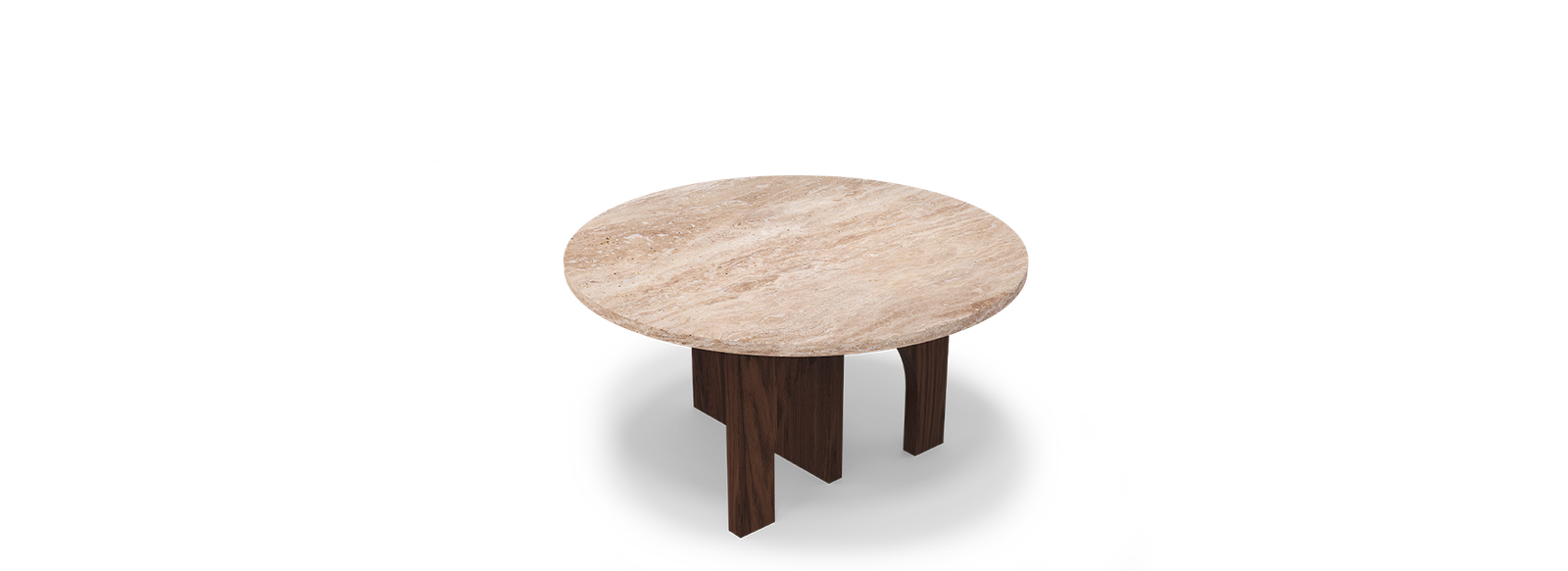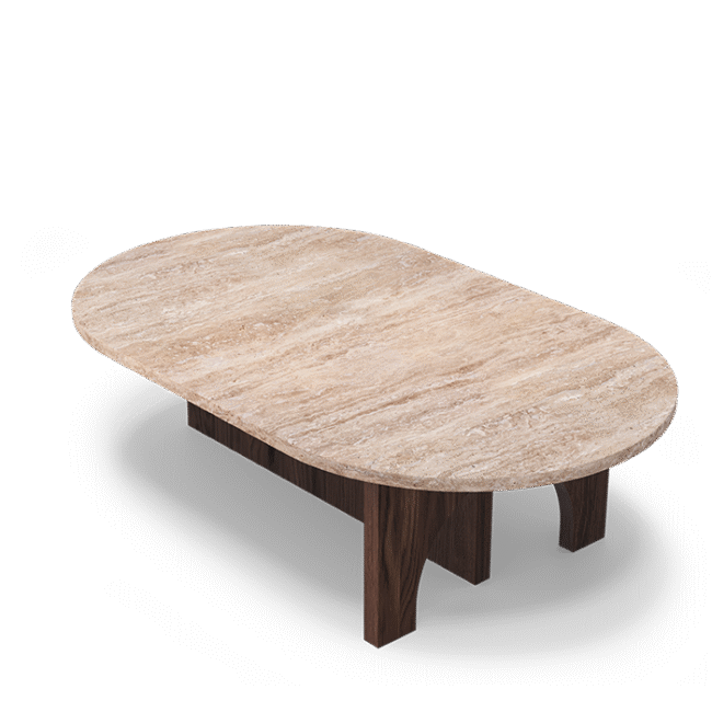 Affogato Center Table: This center table exudes the inviting allure of an affogato dessert. Its Travertine stone surface, like a canvas, is bathed in warm, creamy tones reminiscent of vanilla ice cream. The table’s wood finish is a rich, deep walnut brown, resembling the robust depth of a well-pulled shot of espresso. Much like the experience of enjoying a steaming affogato on a cozy afternoon, this modern center table is an elegant and harmonious option for a modern living room. Other marbles and wood colors are available upon request.