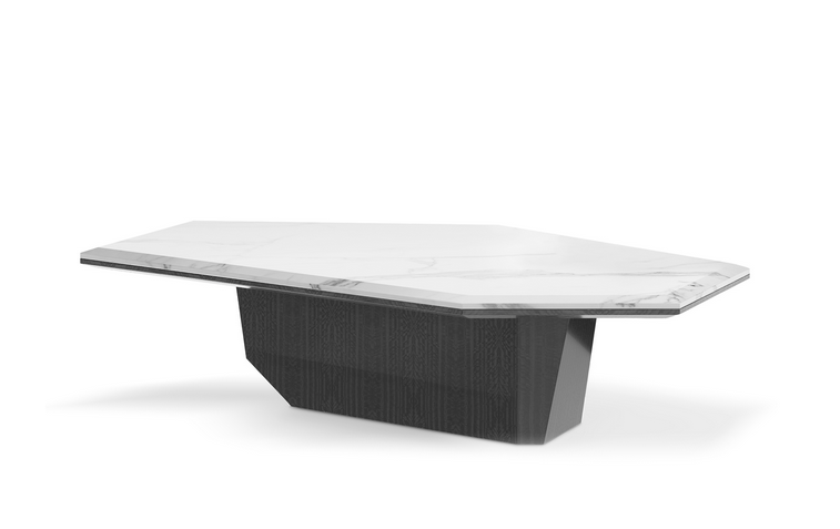 Body: Statuario Marble & Glossy Grey Eucalyptus Frisé Veneer