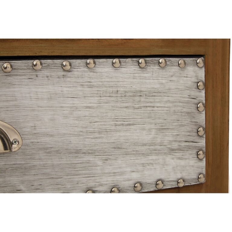 A striking feature in your living space, the Alamy Coffee Table, with 2 drawers, will provide a stylish storage solution and contemporary furniture piece in your home. The frame is made from durable MDF, with fir wood legs, ensuring a robust table, while the wooden grain adds rustic charm to complement most settings. Two equal sized drawers feature a decorative aluminium sheet finish, bringing a modern touch to the table. The table has ample space for keeping magazines, coasters, remote controls and more safely stored, and close to hand. A wonderful addition to your living space, the Alamy Coffee Table adds style and practicality to most settings. *This item has a distressed look, imperfections in the wood and metal are part of the design*