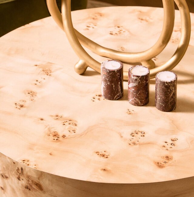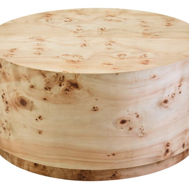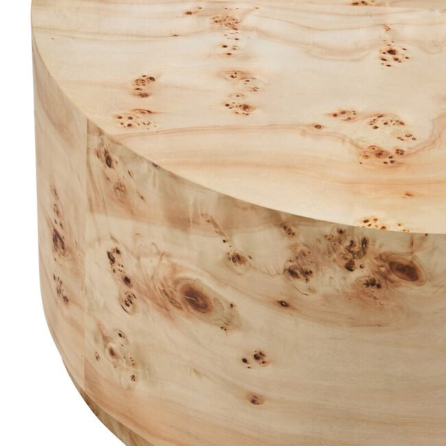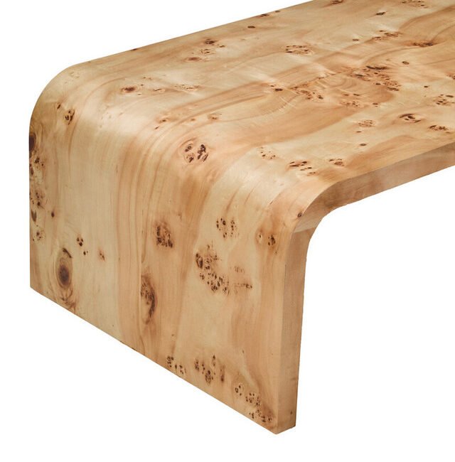 Atom Burl Wood Design Coffee Table: The Mota burl wood curved coffee table highlights a blend of organic charm and modern design. It showcases a captivating burl wood design, highlighting the unique, swirling grain patterns and natural imperfections that give it character. Stylish and functional, this modern coffee table is perfect for any space.