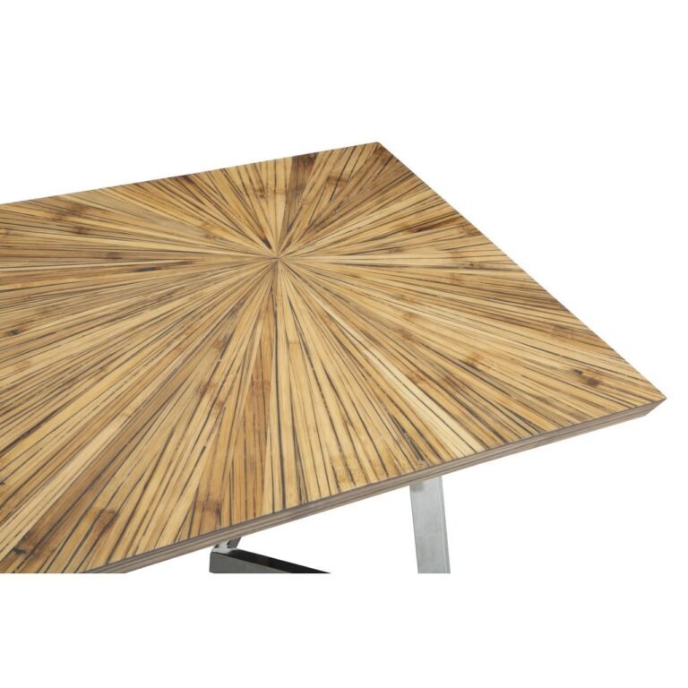 Baran Coffee Table has a rectangular, renewable bamboo wood tabletop is supported by stainless steel, angular sledge legs, combining to form a triangular design at the base. Natural grain gives texture to this table and metallic detail ensures it is a modern piece.