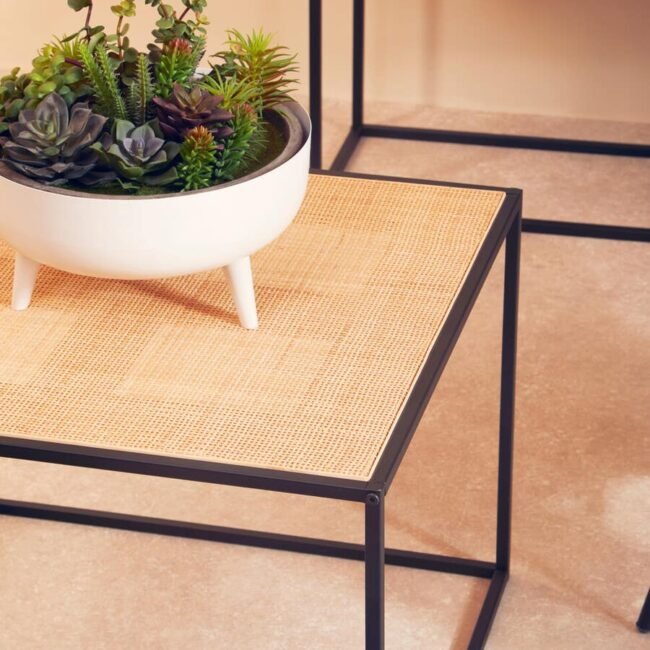 This Epok Coffee Table has a natural rattan top contrasted with a sleek black metal frame that will add style to your decor