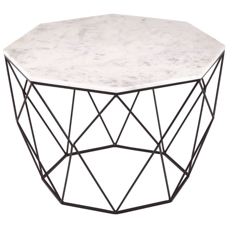 The octagonal base of the Gaic Octagon Table is made from smooth iron and has a distinctive prismatic design. The iron has a black finish that, combined with the white marble, creates a monochromatic impression.