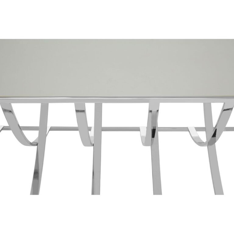 Hamie Silver Coffee Table: Its frame is made from sleek stainless steel and has a chrome finish. A series of gently arcing lines run along the length of the frame, creating a sublime flowing look. A pane of mirrored glass is set into the table’s rectangular top. Use it to make a luxe design statement in the living room or hallway.