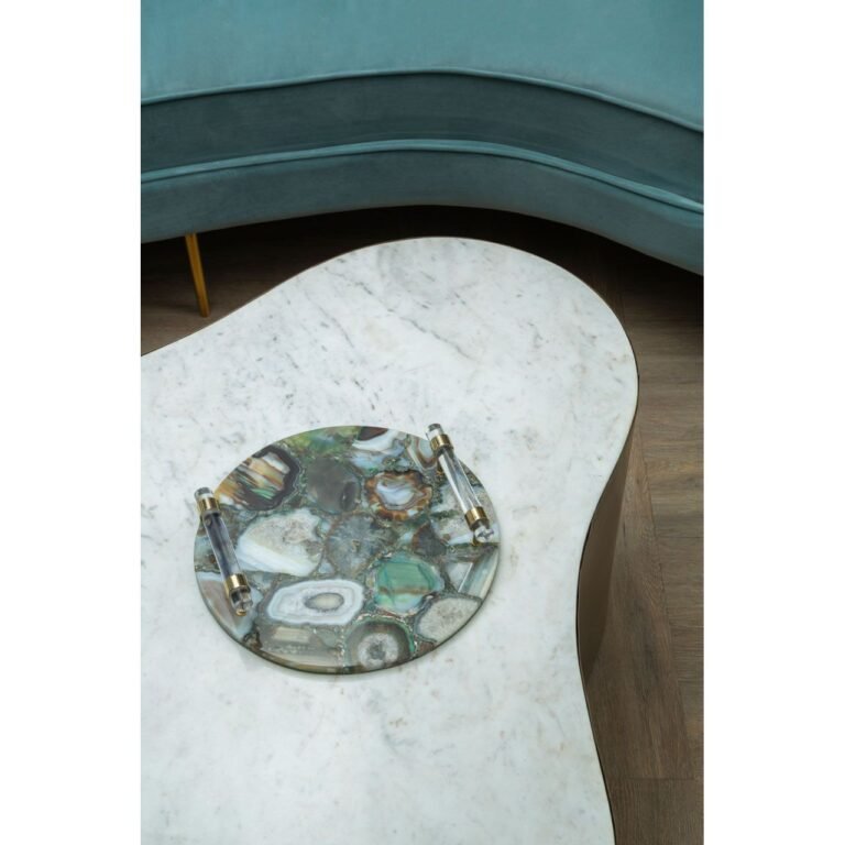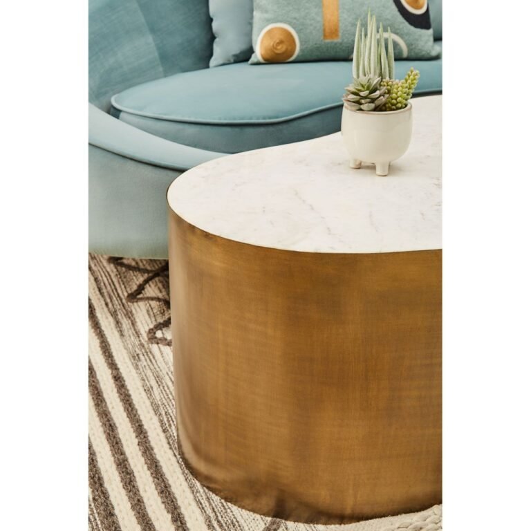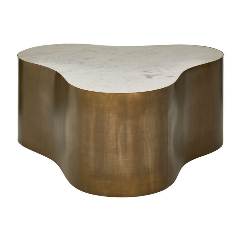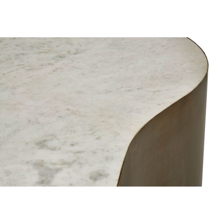 Hamy Coffee Table tricorn sides are made from tough iron and have a metallic brass finish. Set into the top is a piece of solid marble, its white colour softly patterned by the natural black veining. Style it next to a luxe armchair or sofa.