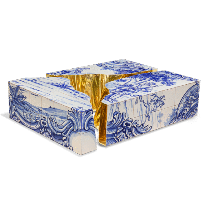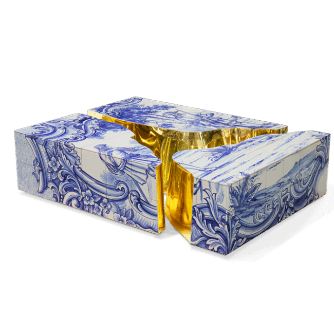A functional artwork conceived in three modules for unexpected combinations. Born from cold and freshly cracked to showing off the world rich, golden interior.