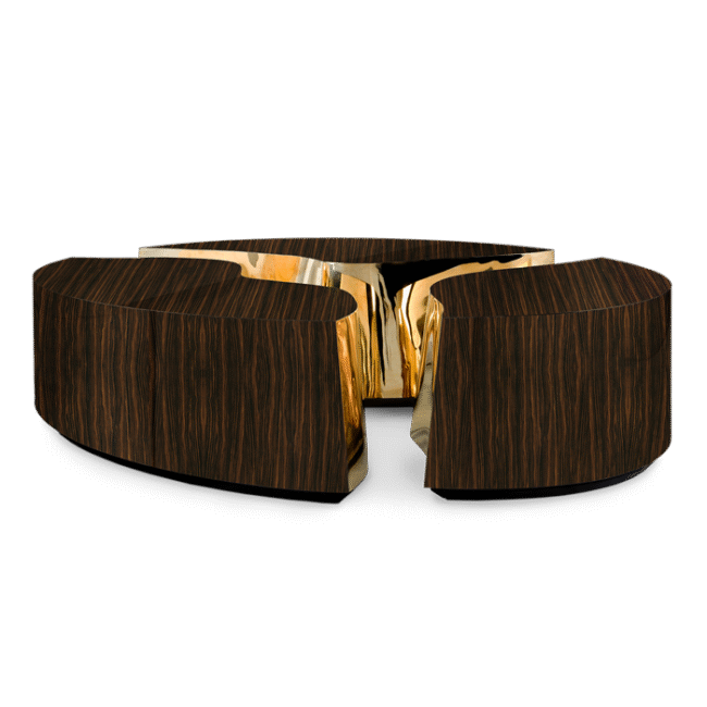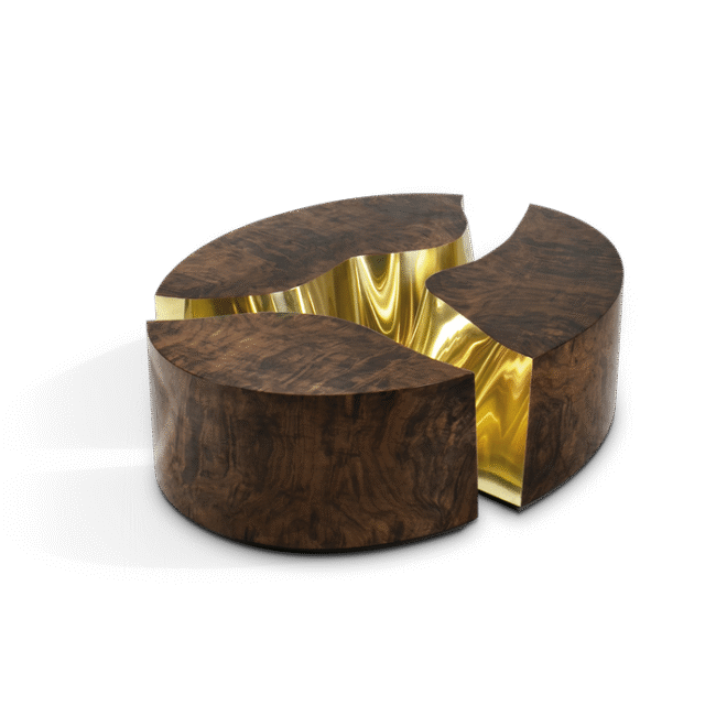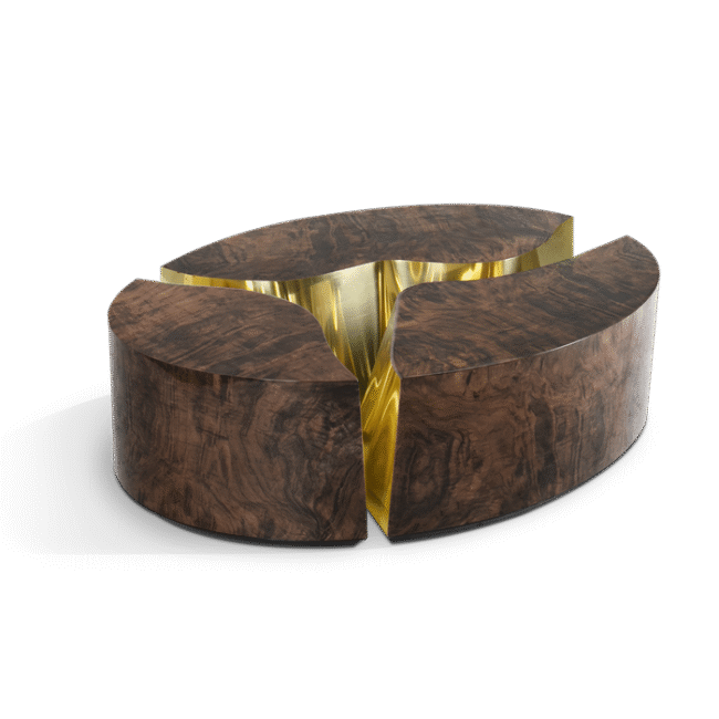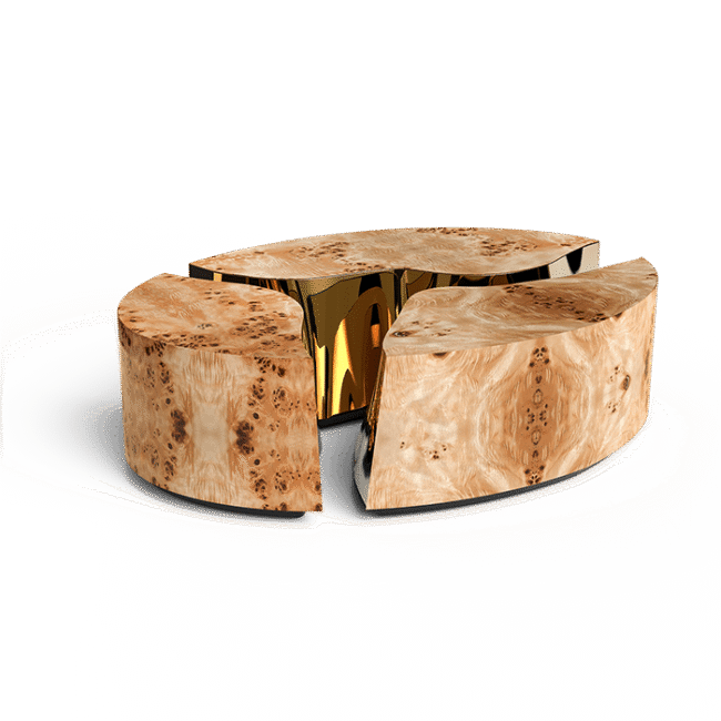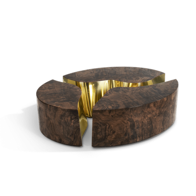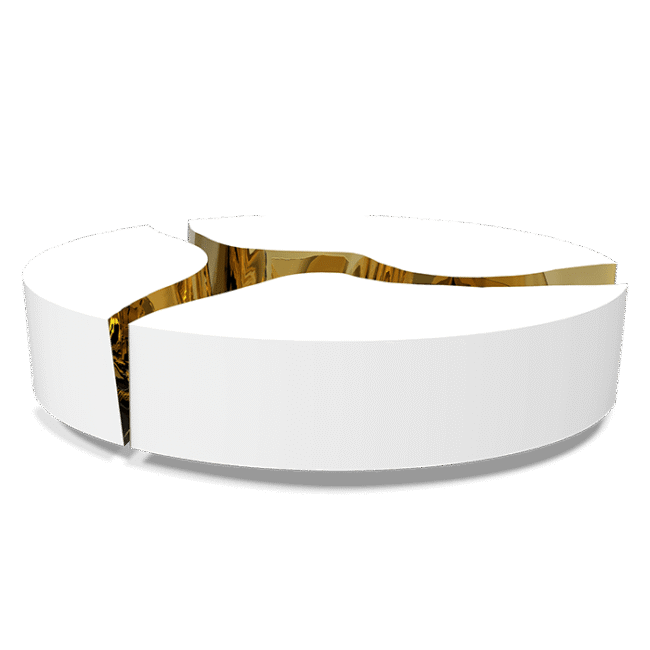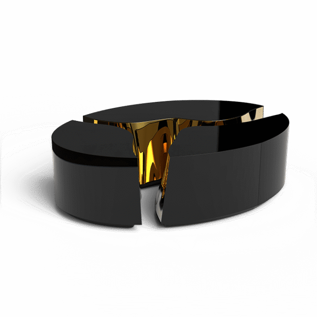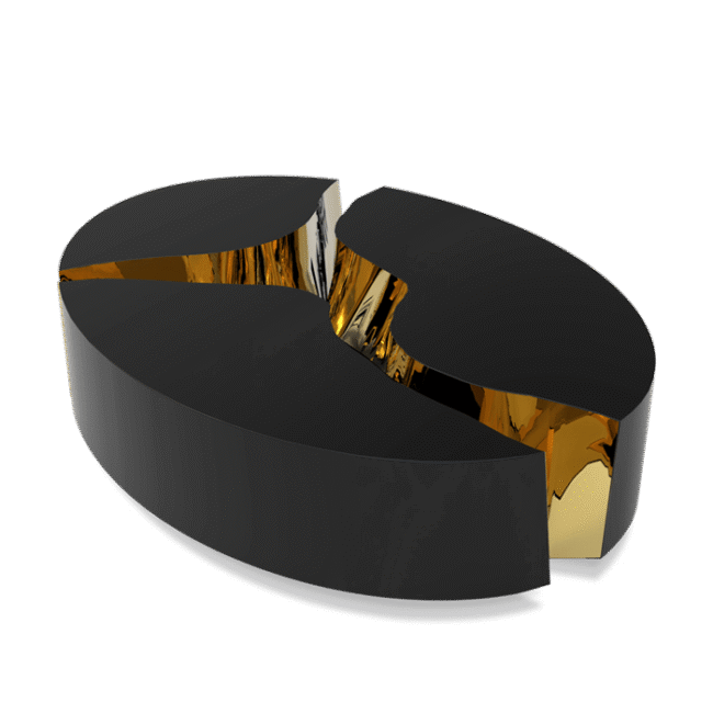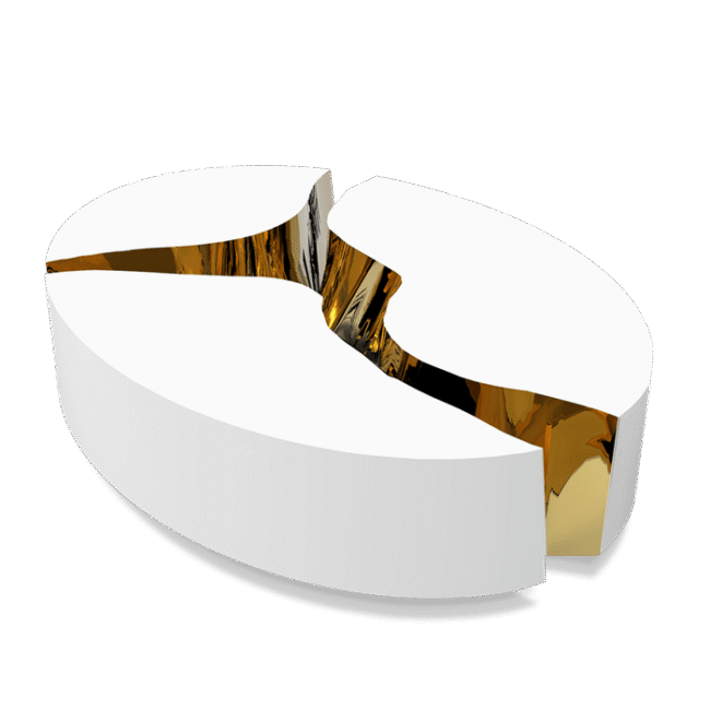 A functional artwork conceived in three modules for unexpected combinations. Born from cold and freshly cracked to showing off the world rich, golden interior.
