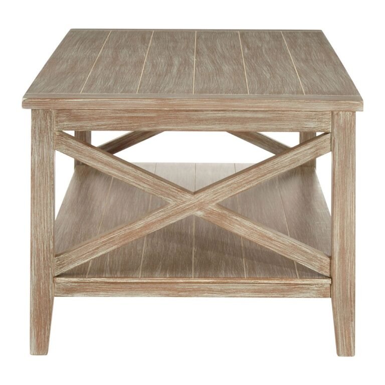 Mayfair Winter Melody Coffee Table: Made from sturdy pine wood, this coffee table’s weathered finish emphasises the natural grain and panelled detail on its surface. Latticed sides provide further stability while creating a pleasing aesthetic. Each of its legs taper at the feet, creating an arcing effect. A lower shelf area provides lots of space for storing reading material.