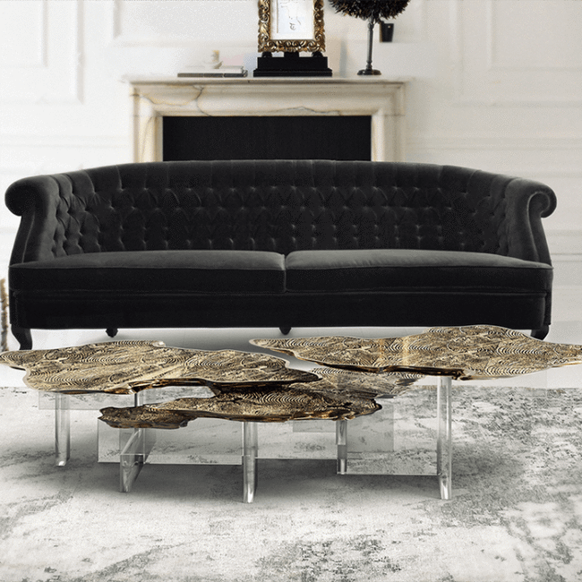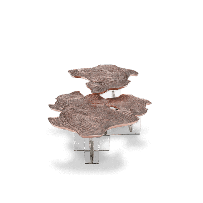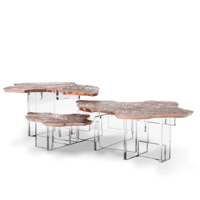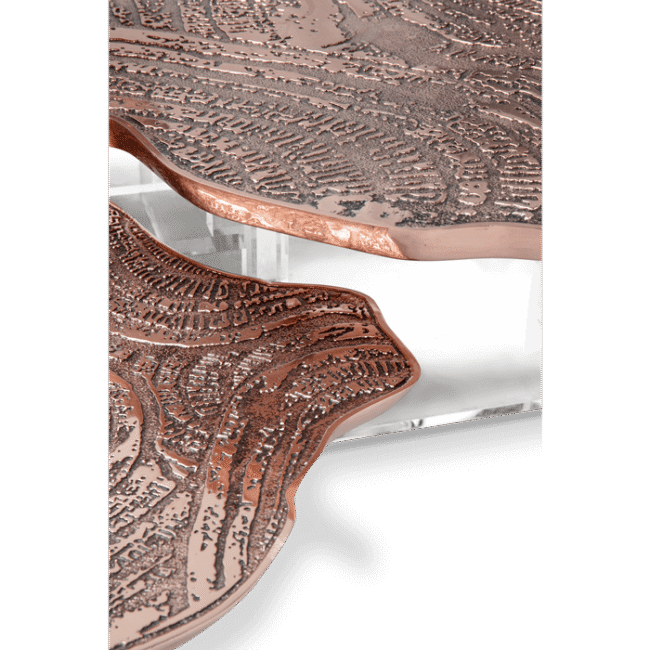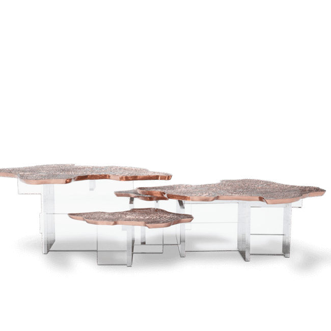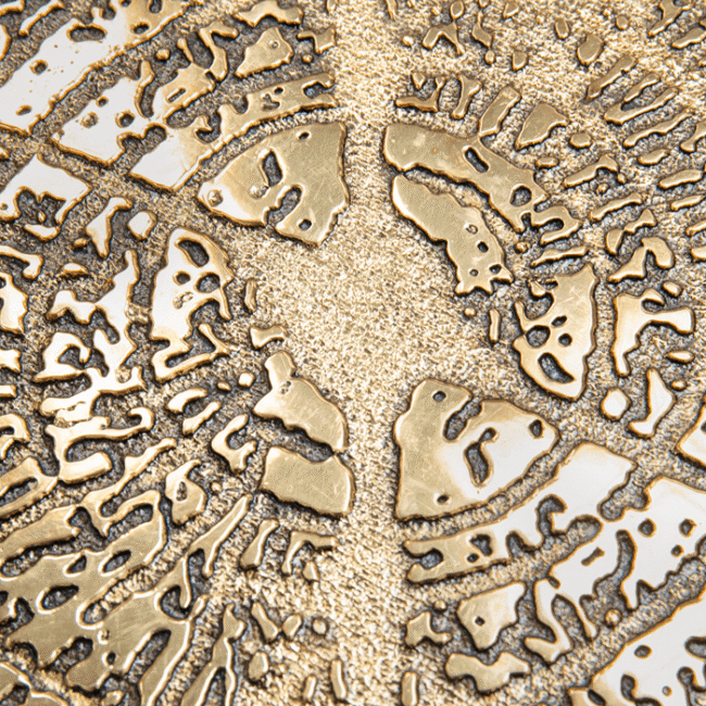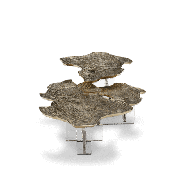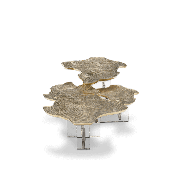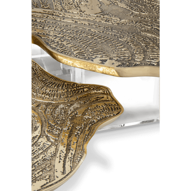 Depicting nature in an innovative way, the Water Lillies series are gently brought to life in an elegant coffee table with gold surface made from cast brass with a unique textured finish. Featuring both contrasting shapes and materials, as the unconventional compositions of the artist, the contemporary coffee table is supported by a geometric acrylic base, allowing to capture natural light. An immersive exceptional objet, the Monet center table is perfect for cutting-edge living rooms.