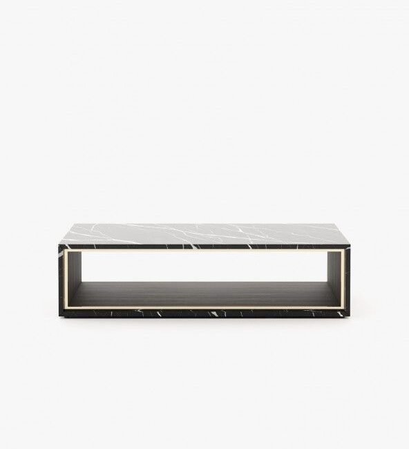 The Nilo coffee table is a modern addition to any space, featuring a solid natural marble surface and sturdy wooden or lacquered interior. There’s an undeniable charm to rectangular coffee tables. Their smooth edges promote easy circulation in your living area, making them perfect for smaller spaces.