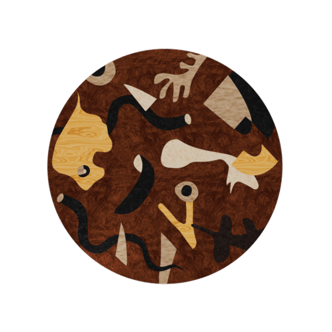 Top in Marquetry Gloss Walnut Root; Black Bird Eye; White Bird Eye; Grey Bird Eye; Ash Root