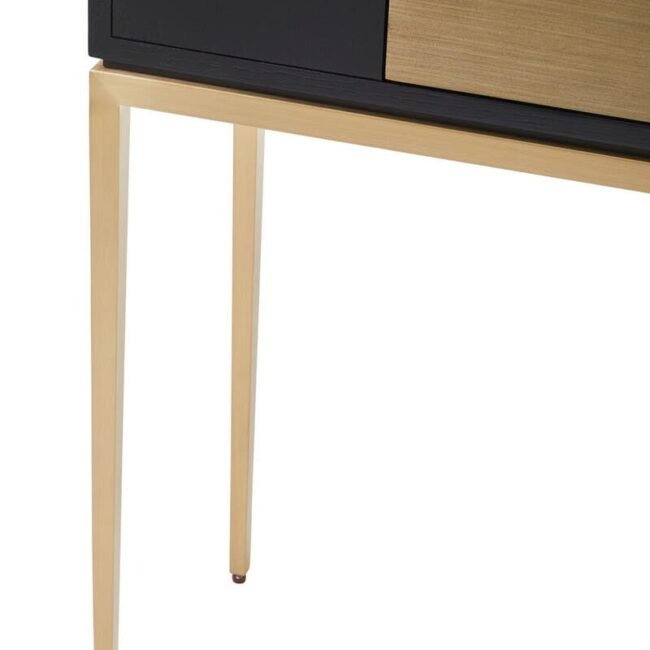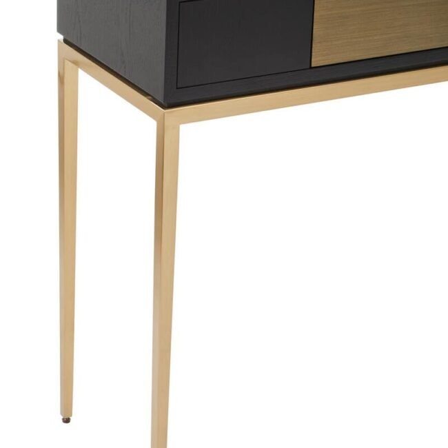 Avioli BLACK AND GREY CONSOLE TABLE in black and grey colors supported by gold finished metal base.