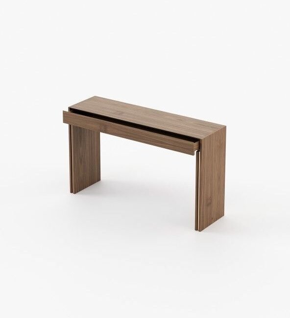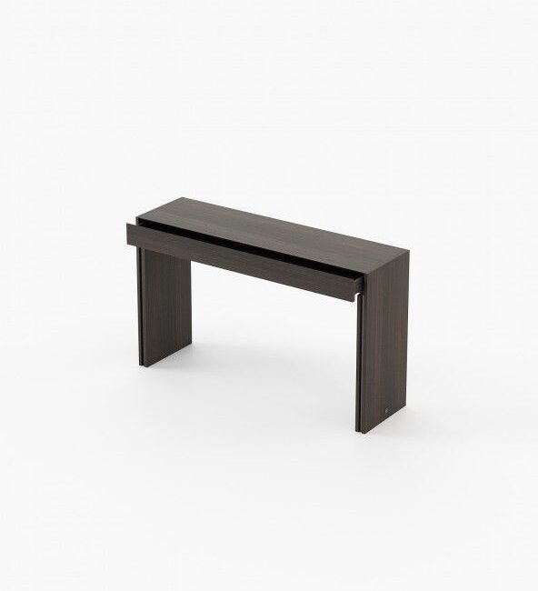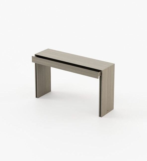 The Ceuta console is a minimalistic piece that features thick rectangular legs that stand flush with the top. It provides structural interest without distracting from the gorgeous wood veneer.