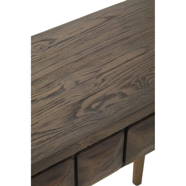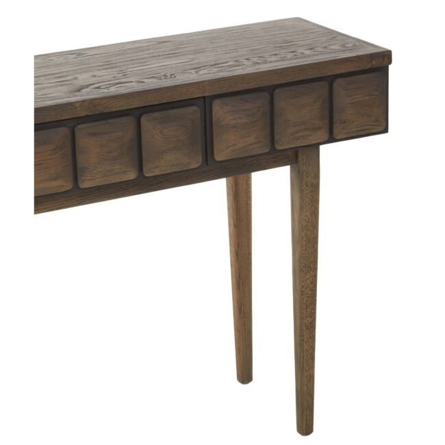 The Hillier Oak Wood Console Table features solid wood tiles spanning across the front of the drawers.