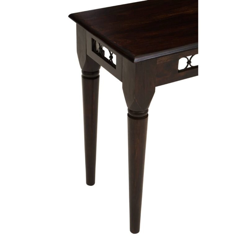 The Irene Dark Sheesham Wood Console Table has iron finishings.