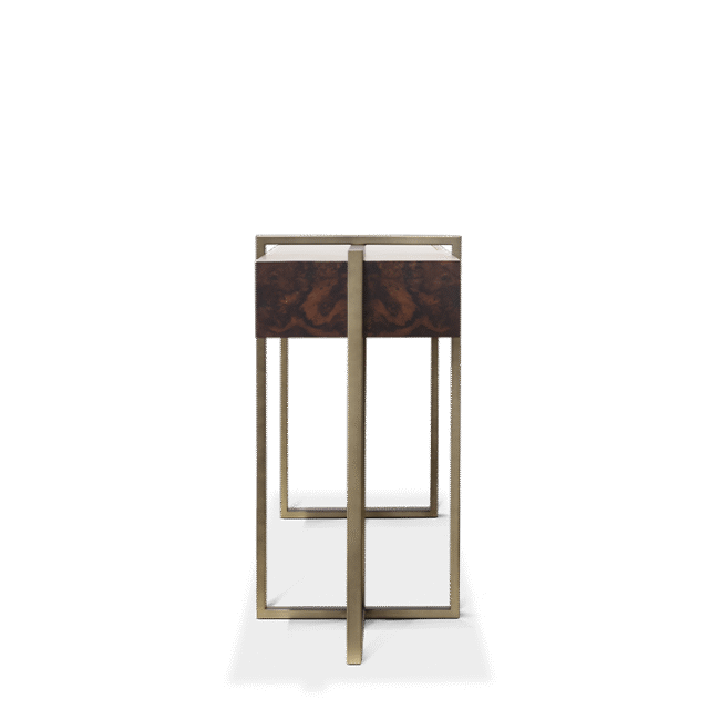 A refreshing, clean, and simplistic design, the Lungo Console’s strict and harsh lines make it the sublime item for a modern interior. A subtle piece that doesn’t overpower or clashes with other designs, but still delivers a sense of splendor and taste, with the prolonged and thin stainless steel with brushed bronze finished legs, embracing a sleek and long Walnut Veneer.
