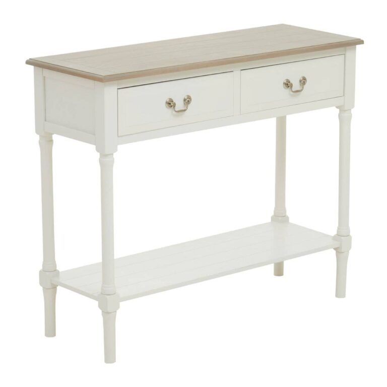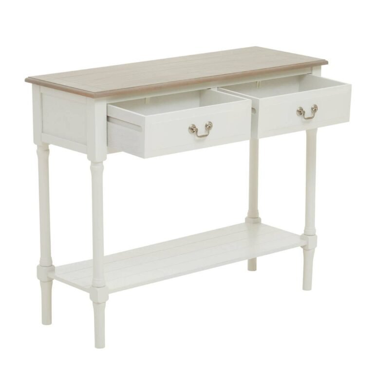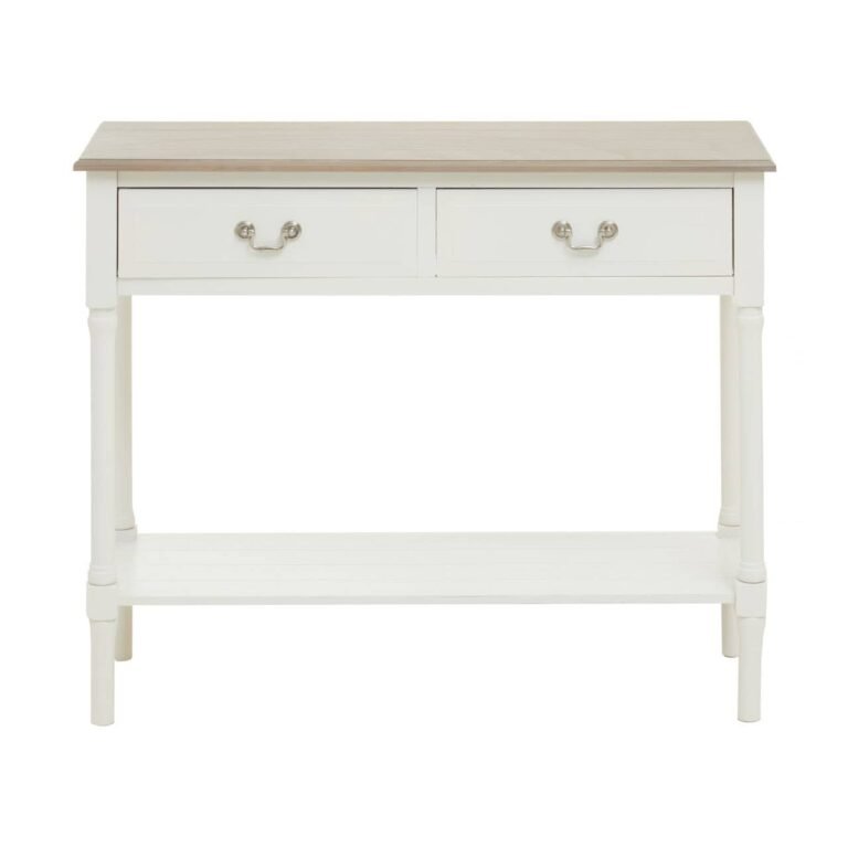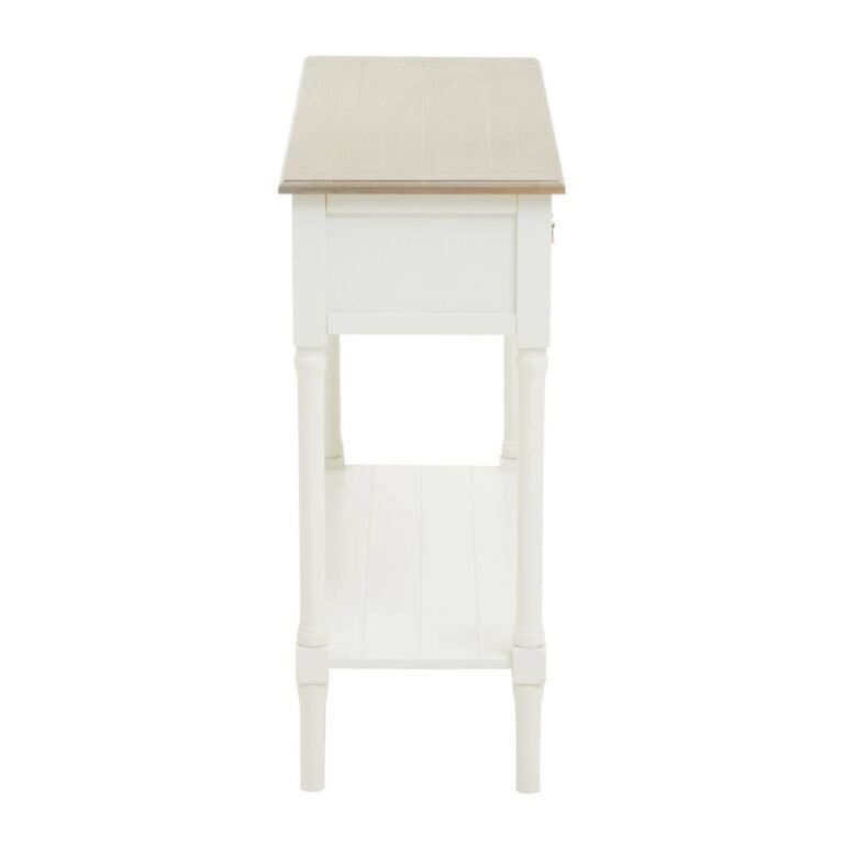 With two drawer, this console table has a winter melody rectangular top and ivory base that adds elegance with its vintage appeal.