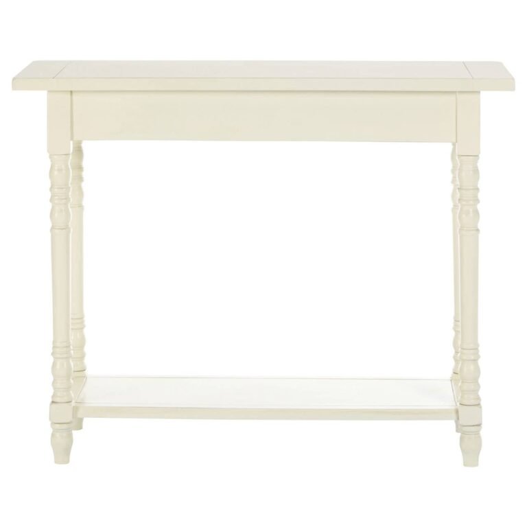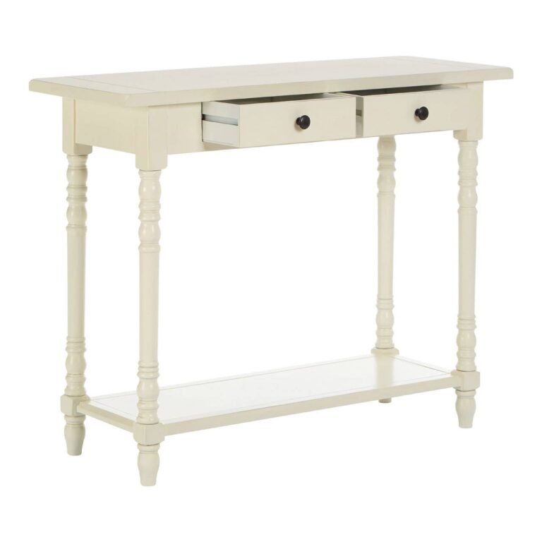 Mayfair 2 Drawers White Console Table: The Mayfair console table is crafted from tough and durable Chinese oak. Both drawers feature round black handles which create a counterpoint to the graceful antique white finish. Carved legs and an overhanging top surface add to its attractiveness. With two display surfaces, it’s ideal for adding a decorative touch to the hallway.