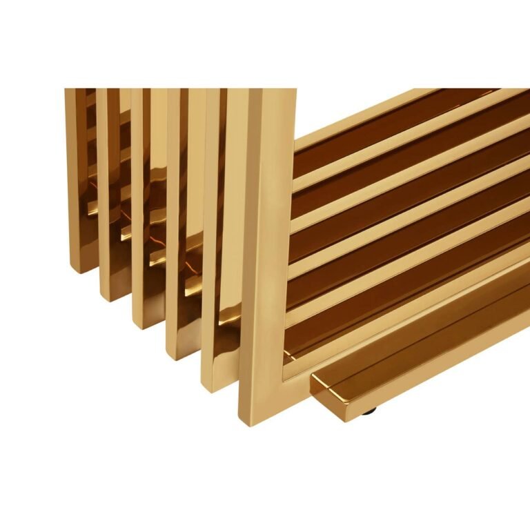 This Todar Ivory White Marble Console Table strikes a perfect balance with its mirrorfinished gold stainless steel base forming clean architectural angles topped with ivory white marble.
