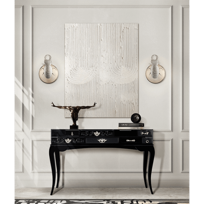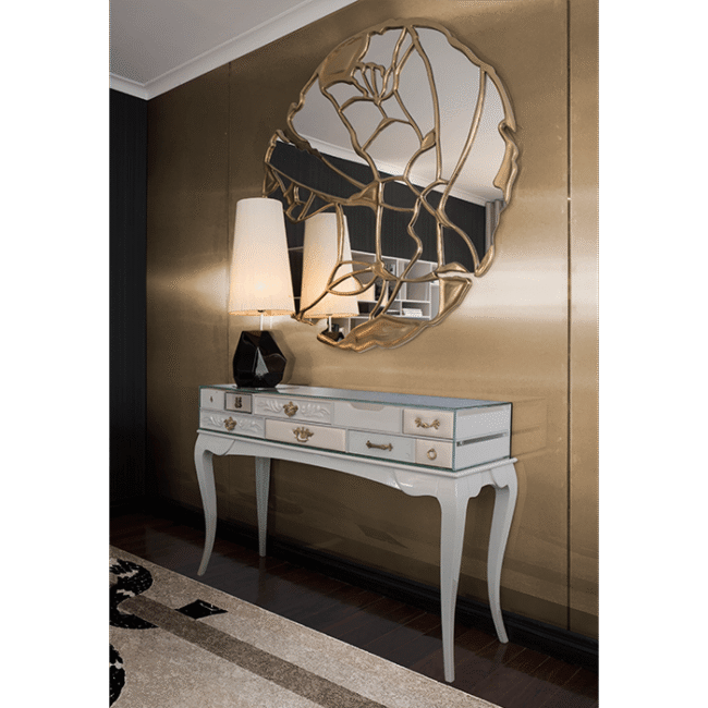 York is a tribute to two of Boca do Lobos most popular designs, Trinity and Mondrian. It excels by being one of the most classic additions to the Soho Collection, and perfectly fits a modern entrance hall, bringing an elegant touch to any decor. Its design respects the style of Boca do Lobo, a blend of contemporary and classic elements. The sinuous wood legs support a glass box which encases a collection of leather, hand carved mahogany, mirror, and lacquered drawers with distinct handcrafted brass pulls in a chrome finish. The epitome of the cosmopolitan spirit of New York in your modern house!
