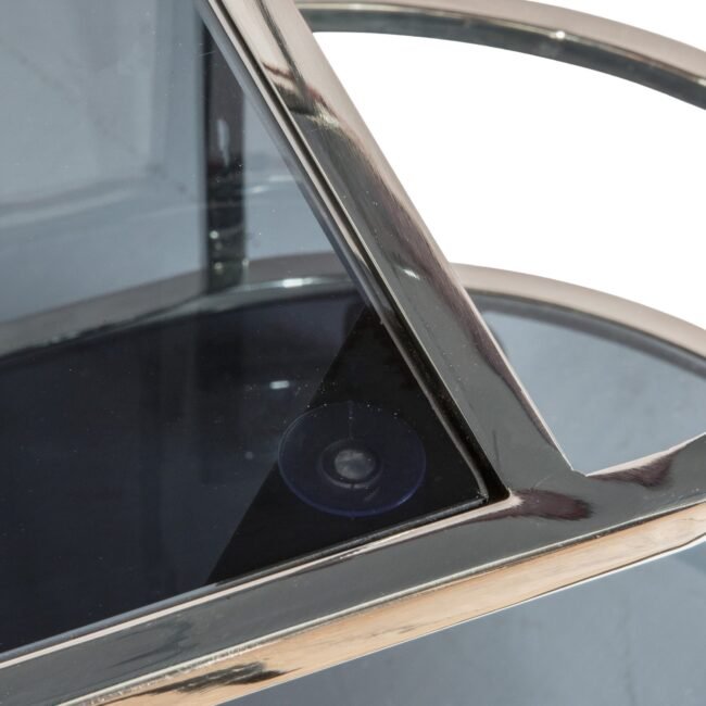 Add a sophisticated touch to a room and store your drinks in style. This chic drinks trolly design offers a contemporary look with a nod to retro styling. The slim square metal frame in a polished silver finish combines perfectly with smoked black glass shelves.