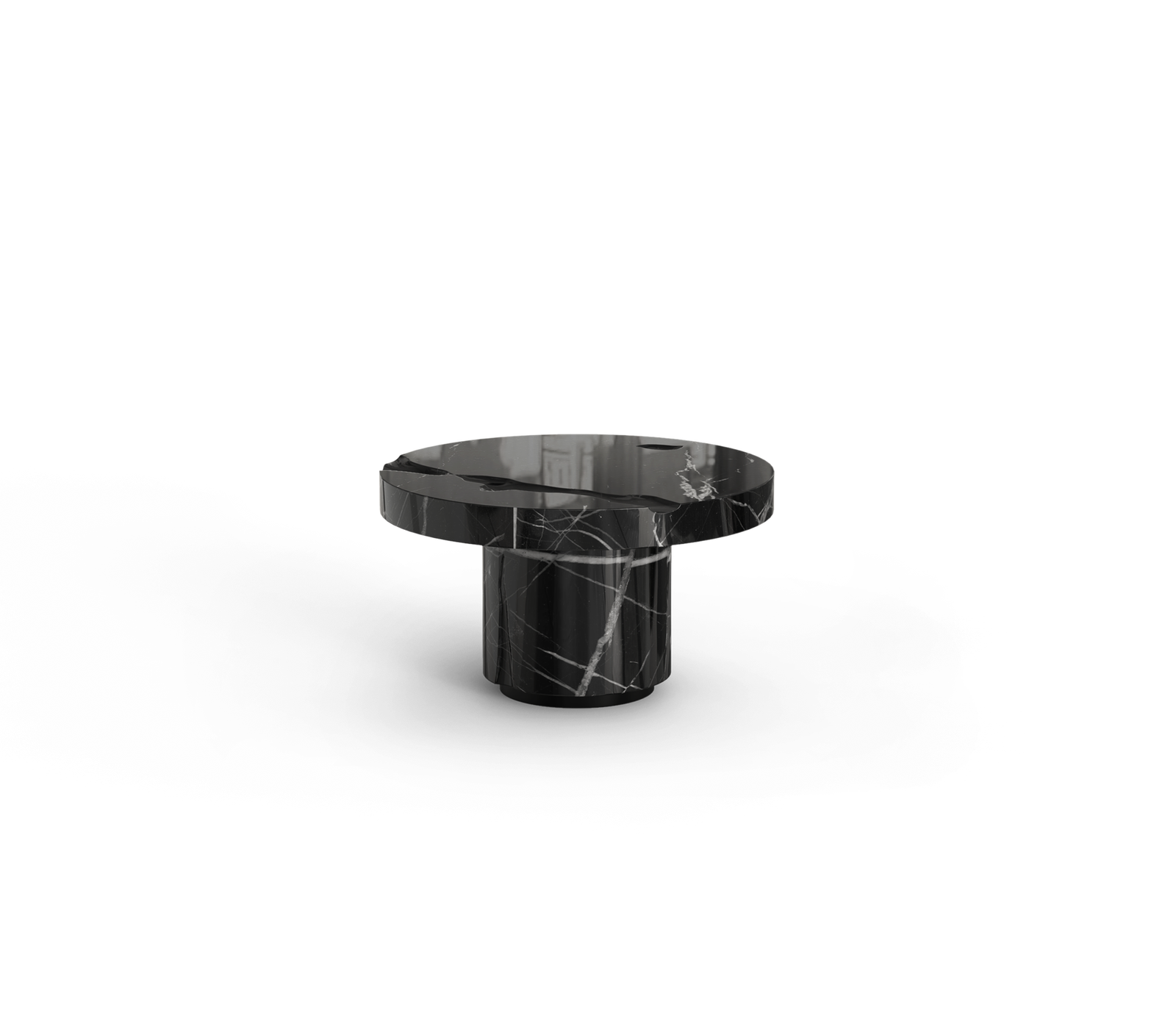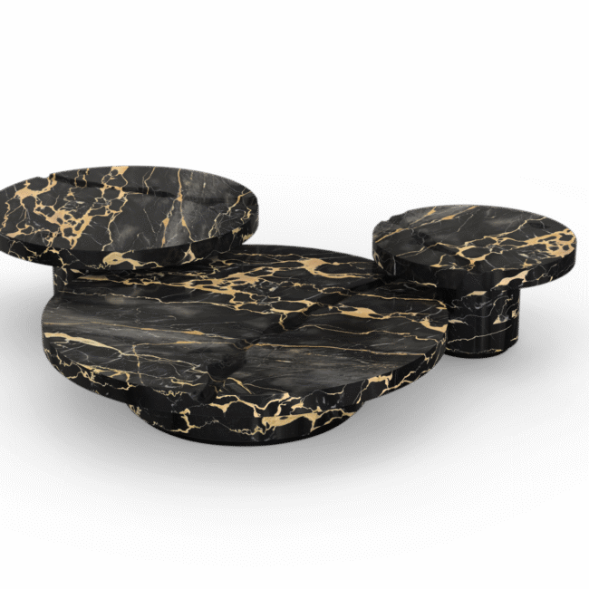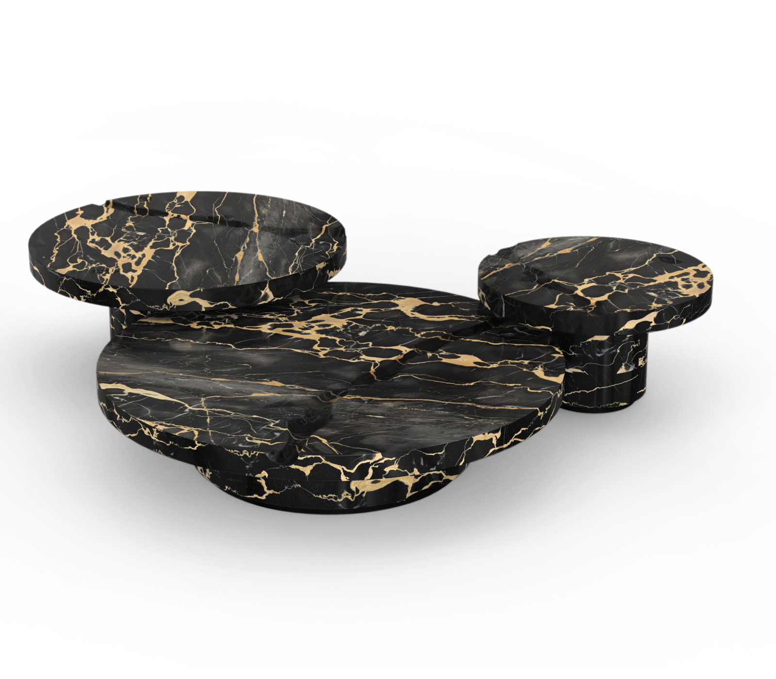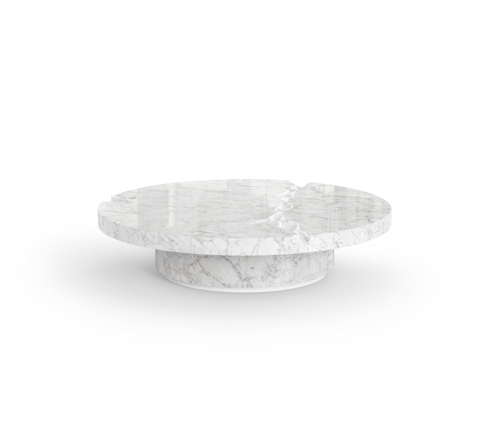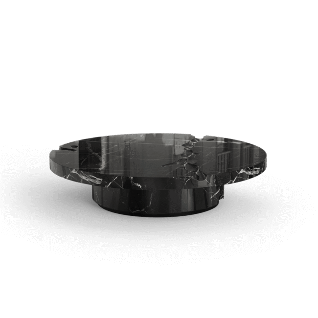 The elegant round center table is built from mahogany wood and features an exquisite polished brass surface detail. Its cracks are hand carved and inserted through polished brass sheets, which are hand hammered for a unique and organic finish. Its finest gold detail crack reflects a gold interior in a manifesto towards power. Flawless and bright, the remaining poplar root surface will raise the bar of the most sophisticated living rooms. Designed and built to make an impression and deliver an unmatched experience, Empire contemporary coffee table is ready to make a statement any occasion.