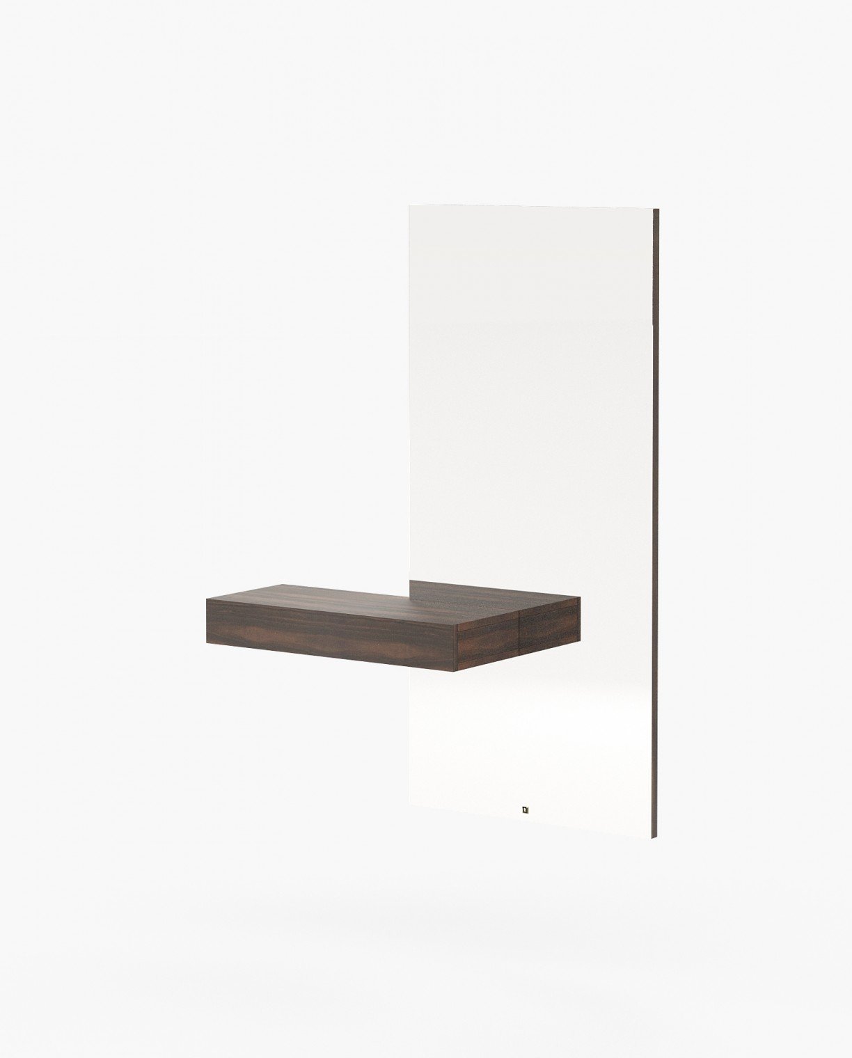 Eos Rectangular Console offers refined elegance and functionality to any entrance hall, showcasing a striking half-mirror design that creates a distinctive aesthetic. Furnished with an optional drawer and integrated dimmable LED, it merges style and practicality, providing a sophisticated element that enhances any refined space.
