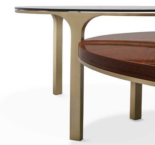 The Luray Caverns, in Shenandoah Valley, are known for their unique and amazing beauty. The LURAY Centre Table pays tribute to the stalactites found inside. With a structure in brushed brass matte and tabletops in glossy palisander veneer and bronze glass, this modern coffee table is going to be the centre of attention in your modern living room design.