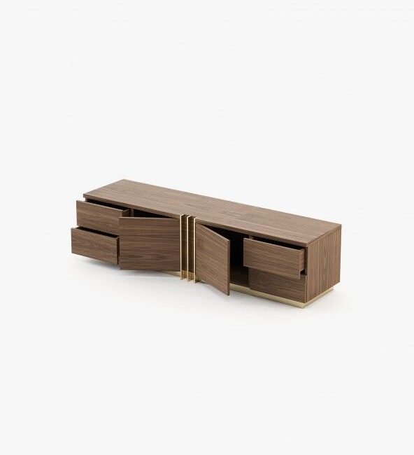 The D’Arc TV cabinet is an iconic example of good taste from the D’Arc collection, featuring two modules of drawers and two central doors, with a wooden body and the perfect amount of details to enhance any home decor.