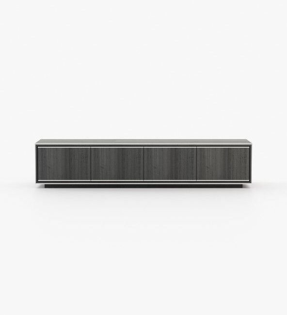 The Rick TV cabinet is a balance of functionality and beauty, featuring four doors and metallic details that can be customised with a wood or marble structure. It is a versatile piece for contemporary living rooms or master bedrooms.