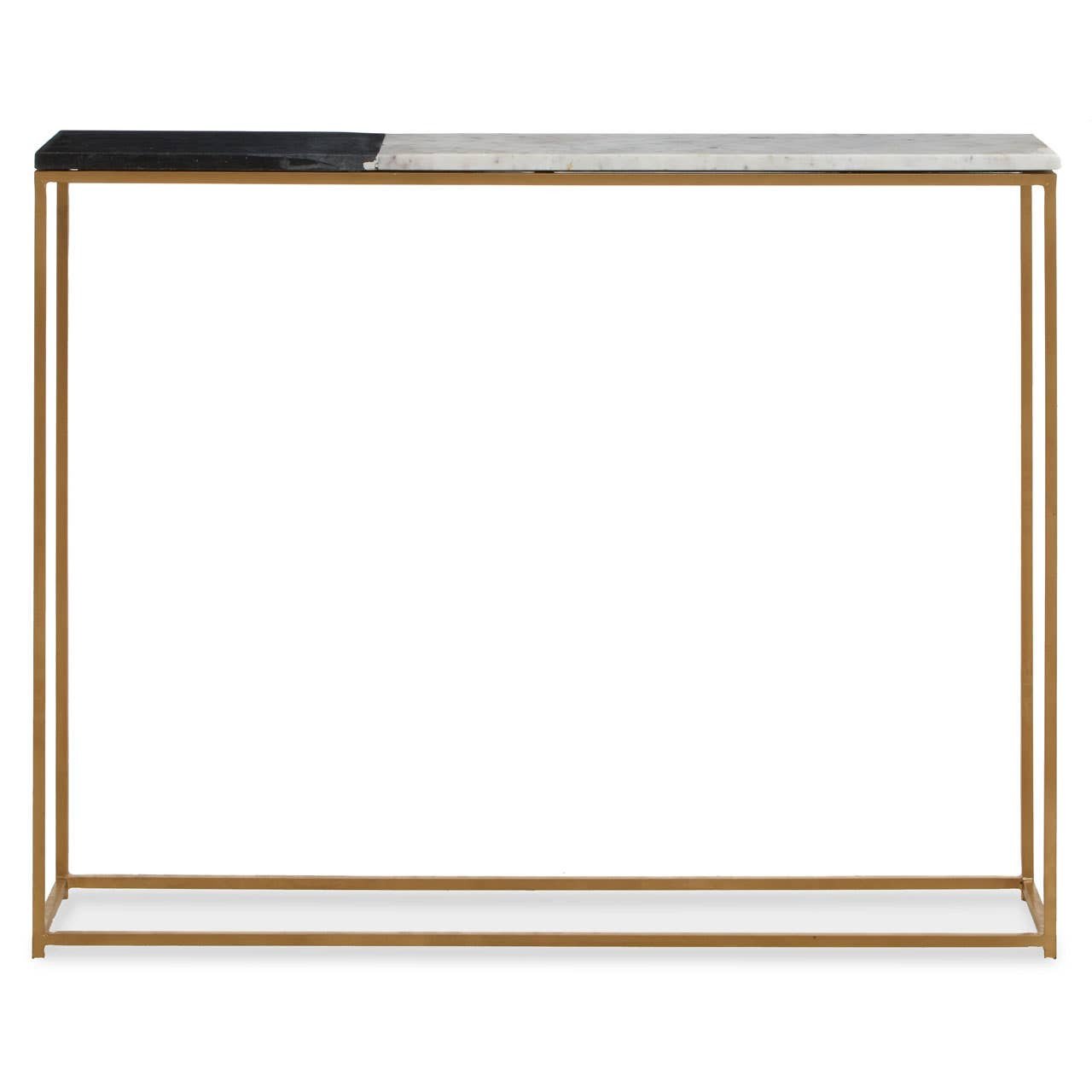 This Ala Marble Console Table with antiqued glass top and gold finish iron legs is a versatile piece for any setting, modern or traditional.